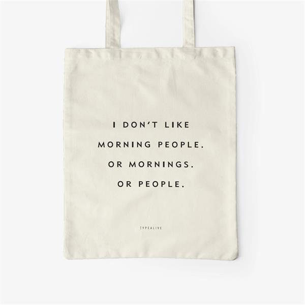 Join the movement and be a Morning Person with the Typealive Cotton Bag. It's not just a bag; it's a way to carry the change you want to see in the world!