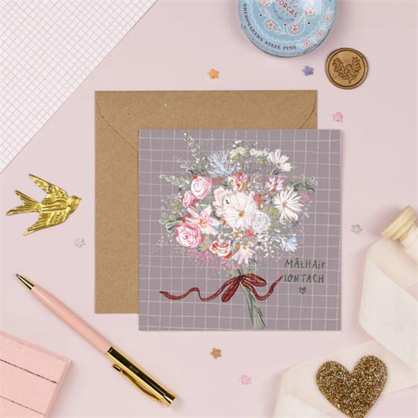Introducing the delightful Pickled Pom Pom Máthair Iontach, a charming illustration of a wildflower bouquet lovingly tied with a ribbon, perfect for celebrating your Máthair iontach (wonderful mother). This unique piece is not only visually appealing but also includes a blank space for your own heartfelt message, making it a delightful gift for Mother's Day or any special occasion. Brighten her day with this playful, artistic touch that expresses your love in both style and sentiment!