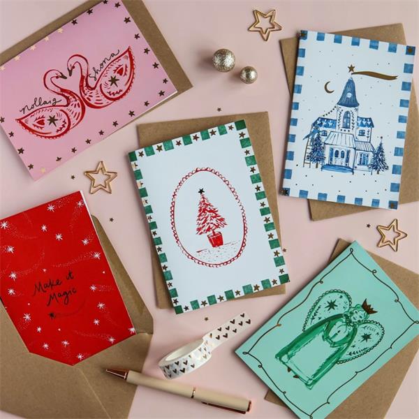 Celebrate the magic of creativity with our Pickled Pom Pom Tiny Tree Card! This delightful card, infused with a playful spirit, started its journey as a watercolour painting from one of my 167 notebooks. Each card is printed locally, showcasing beautiful gold foil details that give it a charming and unique touch.